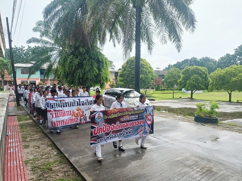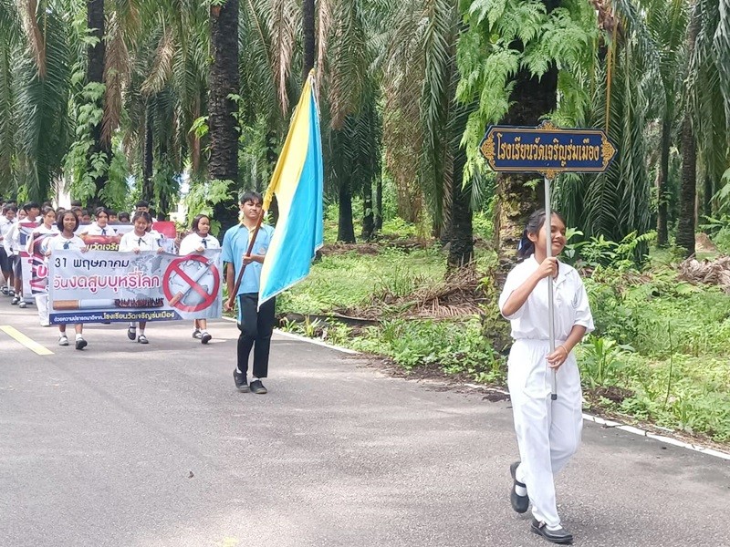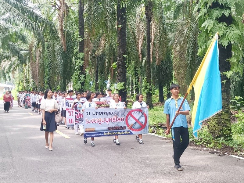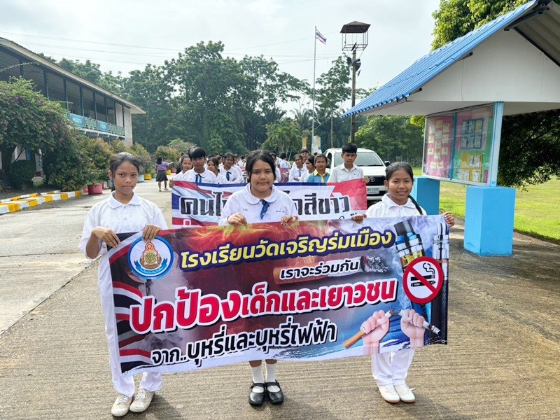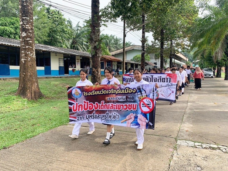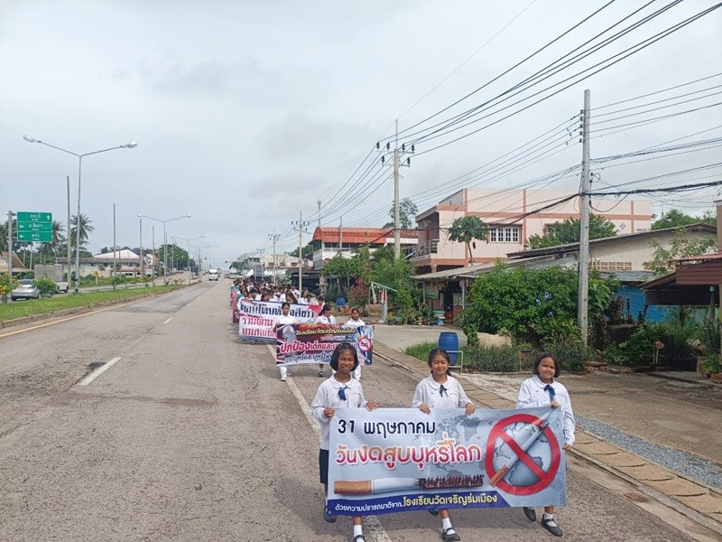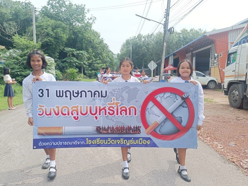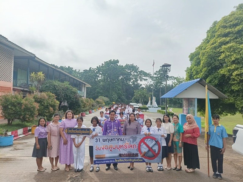 วันศุกร์ ที่ 31 พฤษภาคม 2567 : โรงเรียนวัดเจริญร่มเมือง นำโดย นายสถาพร ไทยกลาง ผู้อำนวยการโรงเรียน นางสาวภณิดา ชูช่วยสุวรรณ รองผู้อำนวยการโรงเรียน คณะครู และนักเรียนโรงเรียนวัดเจริญร่มเมือง ร่วมกันจัดกิจกรรมเดินรณรงค์เนื่องในวันงดสูบบุหรี่โลก ประจำปี 2567