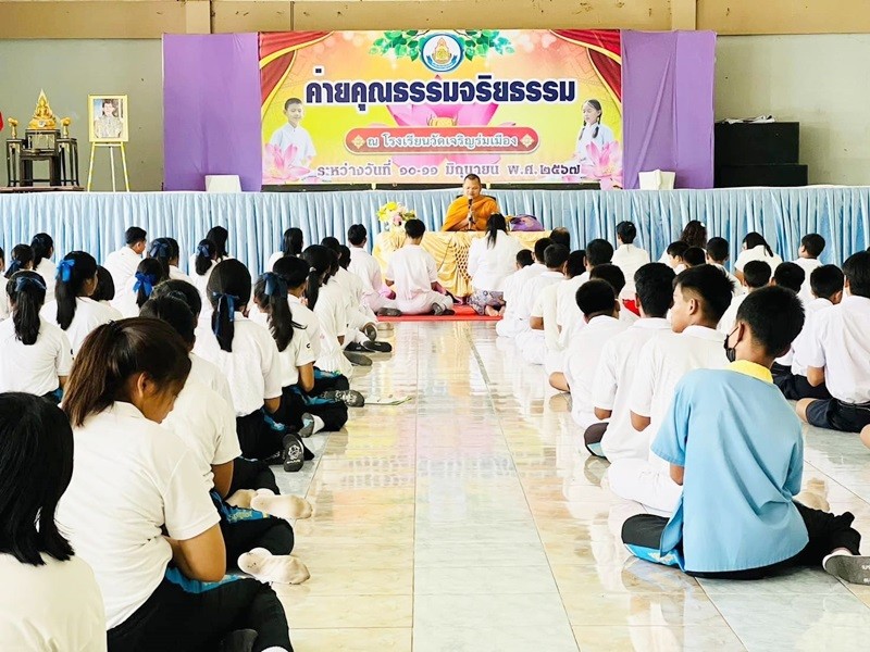 โดยโรงเรียนวัดเจริญร่มเมือง กำหนดจัดกิจกรรมค่ายคุณธรรมจริยธรรม ให้กับนักเรียนชั้นอนุบาล - ชั้นมัธยมศึกษาปีที่ 3 ประจำปีการศึกษา 2567 ระหว่างวันที่ 10 - 11 มิถุนายน 2567 เพื่อส่งเสริมคุณธรรม จริยธรรมอย่างต่อเนื่อง ให้กับครู บุคลากรทางการศึกษาและนักเรียน ได้ร่วมกันประพฤติ ปฏิบัติในการเป็นพุทธศาสนิกชนที่ดี และสนองนโยบายของกระทรวงศึกษาธิการ "คุณธรรม นำความรู้ และนำคุณธรรมจริยธรรมสู่โรงเรียน |